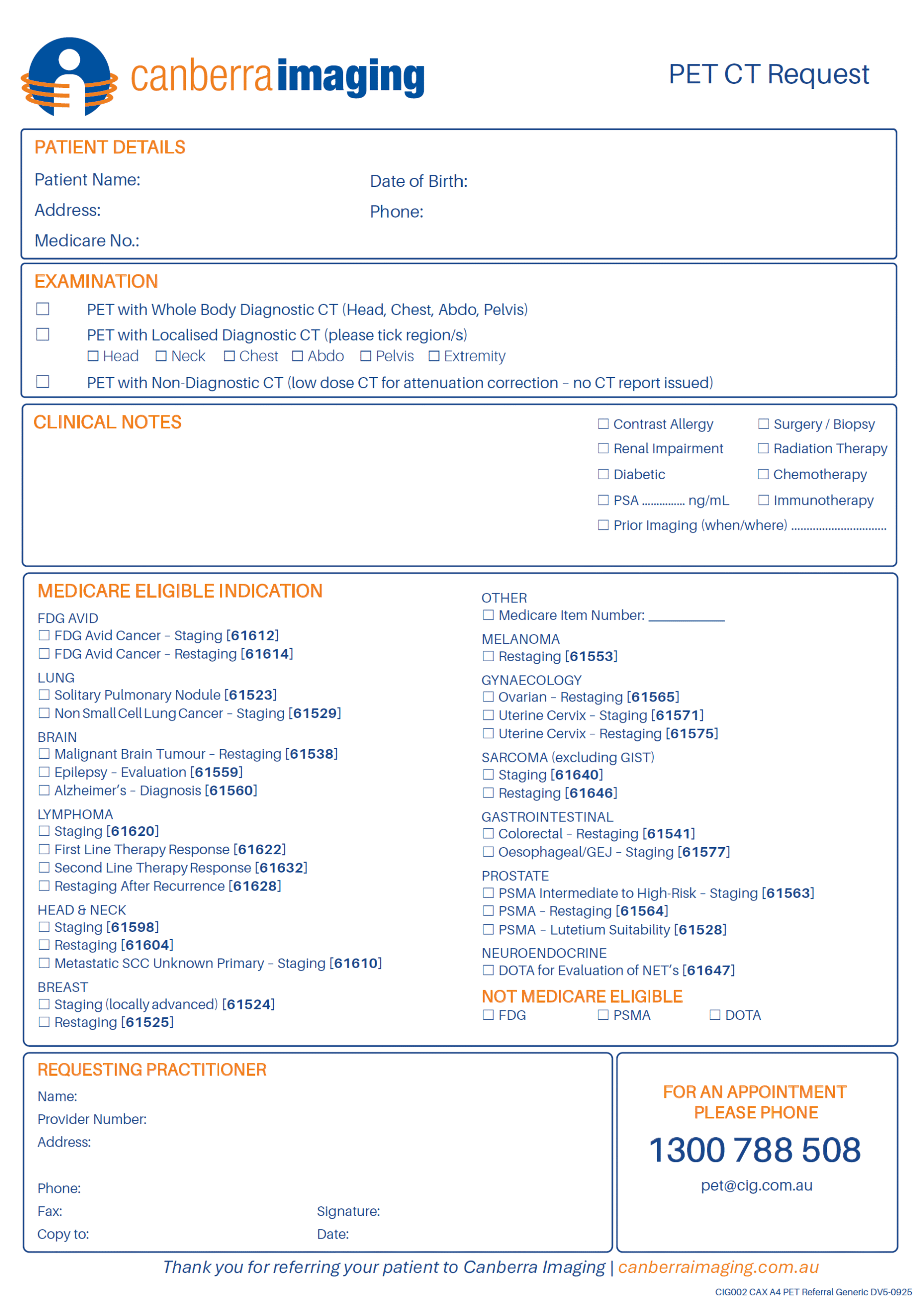 We can provide Referring Practitioners with a range of diagnostic imaging request pad formats. Please use the form below to order referral pads online or phone (02) 6203 2222.